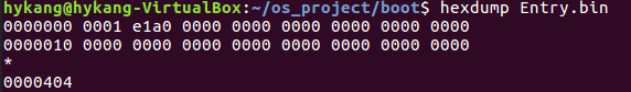 $arm-none-eabi-objcopy -O binary Entry.o Entry.bin //object파일에서 binary 추출