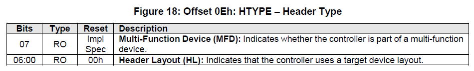 PCI header는 디바이스의 타입에 따라 Type 0, Type 1 두 종류로 나뉘며 Type에 따라 header의 bit가 다르게 사용된다. 하지만, 여기에서는 RC 혹은 Bridge를 사용한 디바이스가 아닌 RC에 다이렉트로 연결된 End device를 가정으로 설명한다.