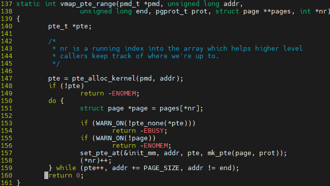루프를 돌며 필요한 page 개수만큼 할당 받게 된다. 후 매핑이므로 VA-PA 연결을 해줘야 하며 그 부분은 map_vm_area에서 진행하게 된다