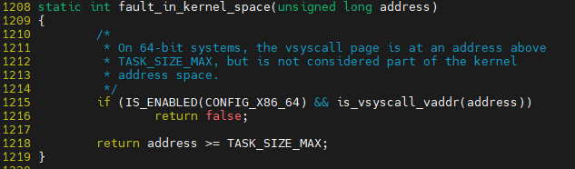그 부분을 확인시 TASK_SIZE_MAX와 비교해 판단 함