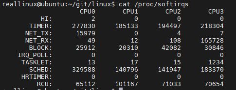 $ cat /proc/softirqs