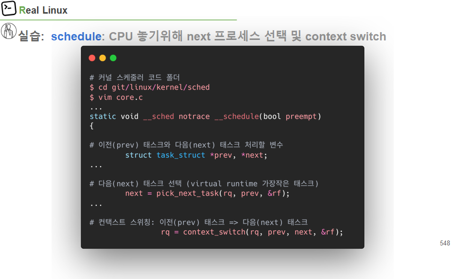 2) schedule: next process 선택 및 context swtich