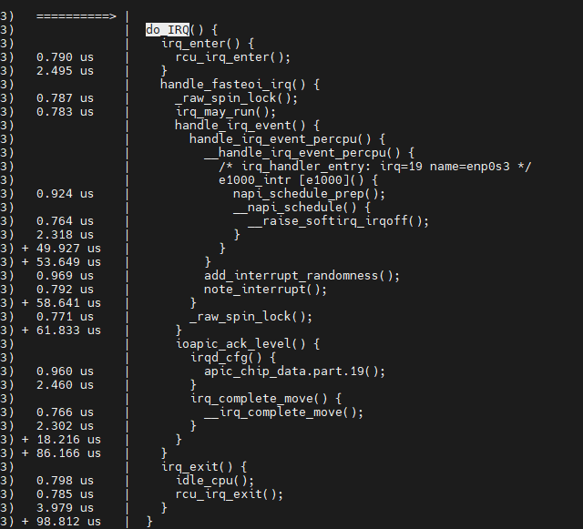 root@ubuntu:/sys/kernel/debug/tracing# echo do_IRQ > set_graph_function