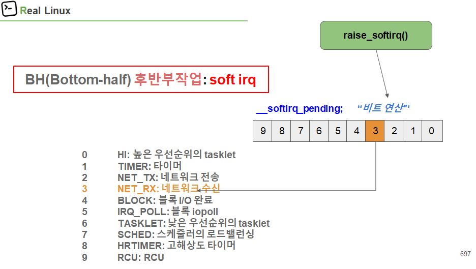 softirq 인터럽트 후반부 BH(Bottom Half) 처리