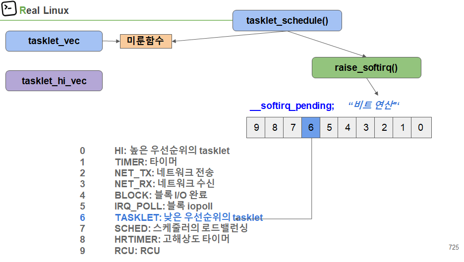 미뤄진 작업은 커널 스레드 ksoftirqd를 통해 나중에 실행 됨