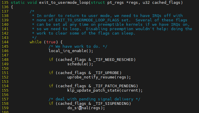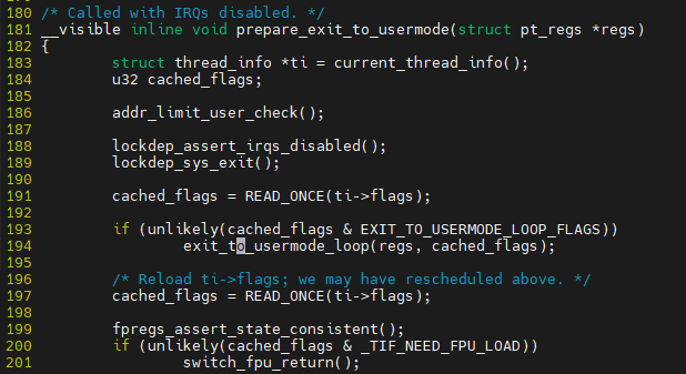 $ vim ${linux}/arch/x86/entry/common.c::prepare_exit_to_usermode