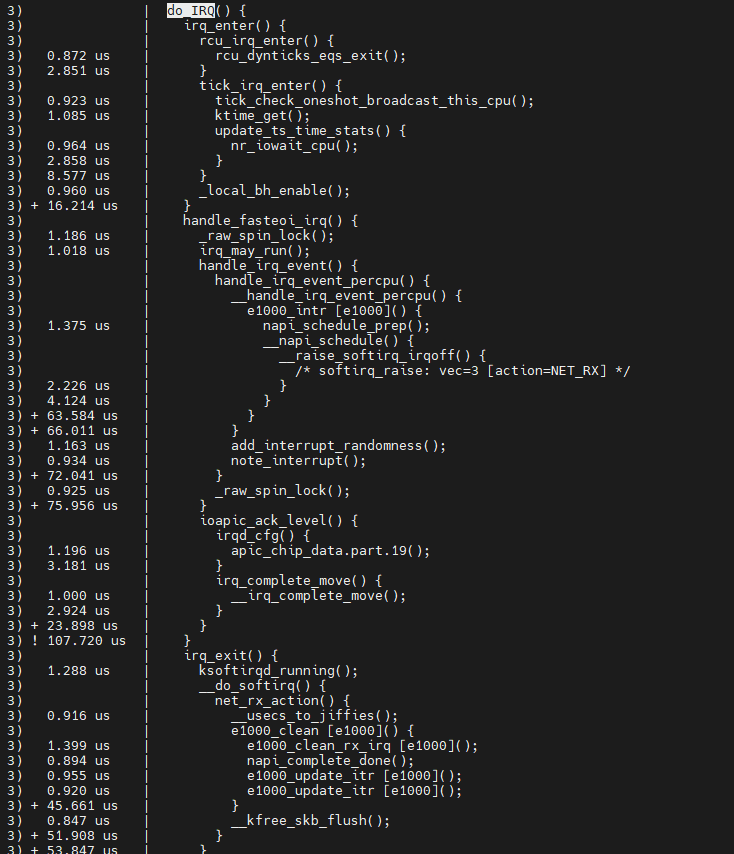 root@ubuntu:/sys/kernel/debug/tracing# echo do_IRQ > set_graph_function