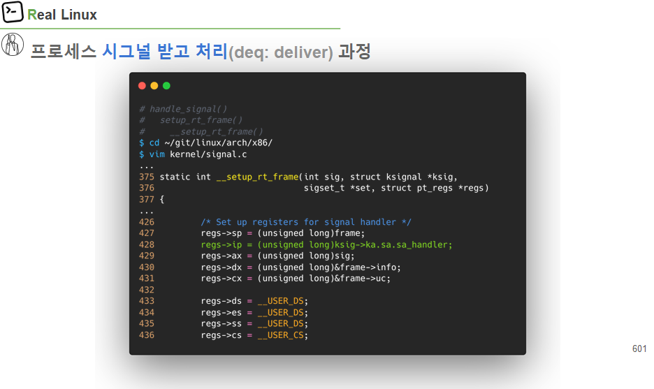 이 부분이 끝난 이후에 user space로 돌아 갈 것인지, kernel mode에서 돌아 갈 것인지 나와 있음