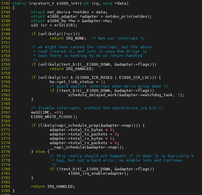 $ vim ${linux}/drivers/net/ethernet/intel/e1000/e1000_main.c.